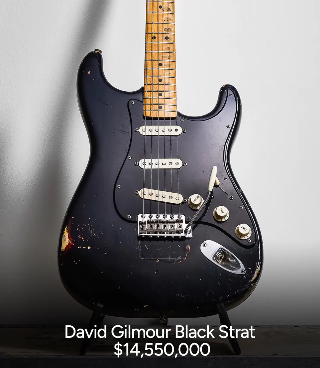 Antes disso, o valor mais alto já pago por uma guitarra era US$ 2,7 milhões, em um leilão de 2005 no Qatar para arrecadar recursos para as vítimas do tsunami do oceano Índico de 2004. Era um instrumento que não pertencera a ninguém, mas contava com autógrafos de diversos astros, como Mick Jagger, Keith Richards, Eric Clapton, Paul McCartney e… ele, David Gilmour!