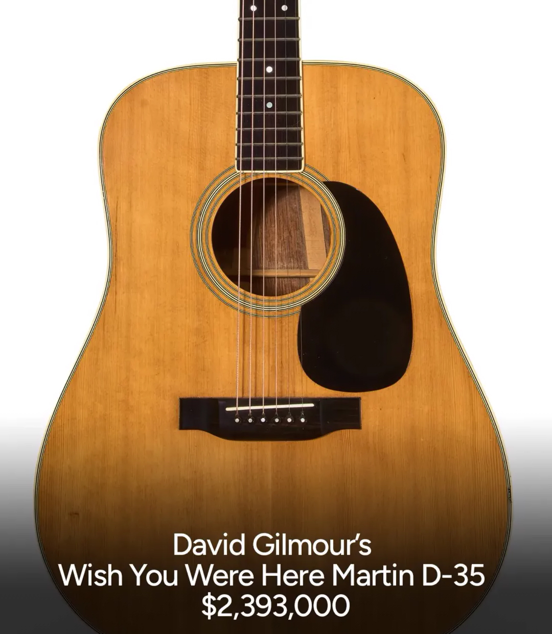 Outro destaque do leilão foi o violão Martin D-35 de David, o mesmo usado para gravar “Wish You Were Here”, do Pink Floyd. O instrumento alcançou o valor impressionante de US$ 2,3 milhões, superando em muito a estimativa de US$ 800.000 a US$ 1,2 milhão.