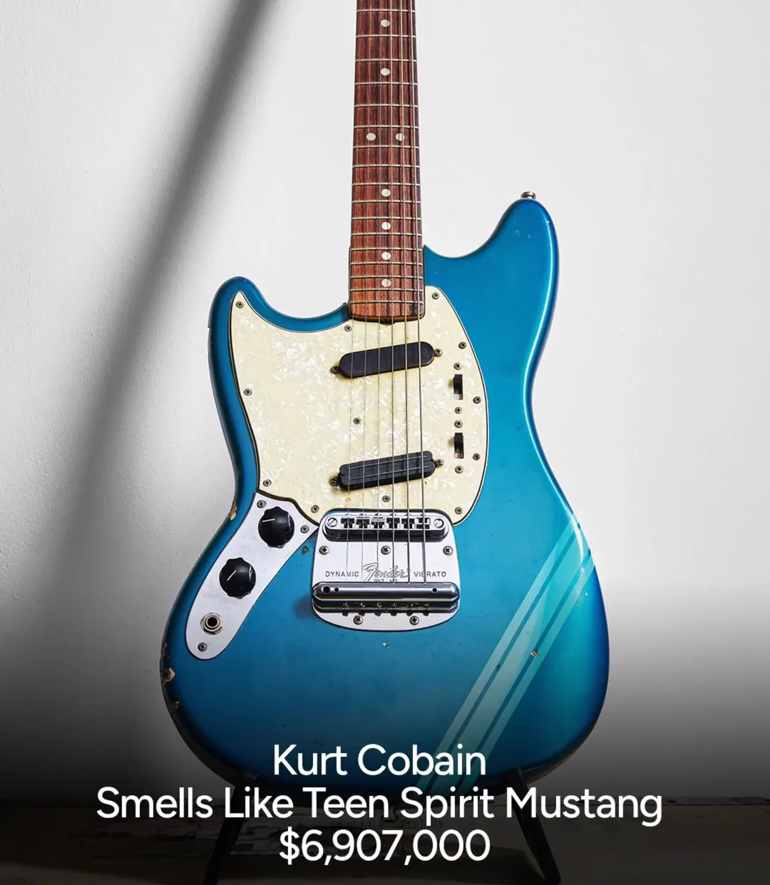 - guitarra usada por Kurt Cobain no vídeo de “Smells Like Teen Spirit” (Nirvana, 1991);